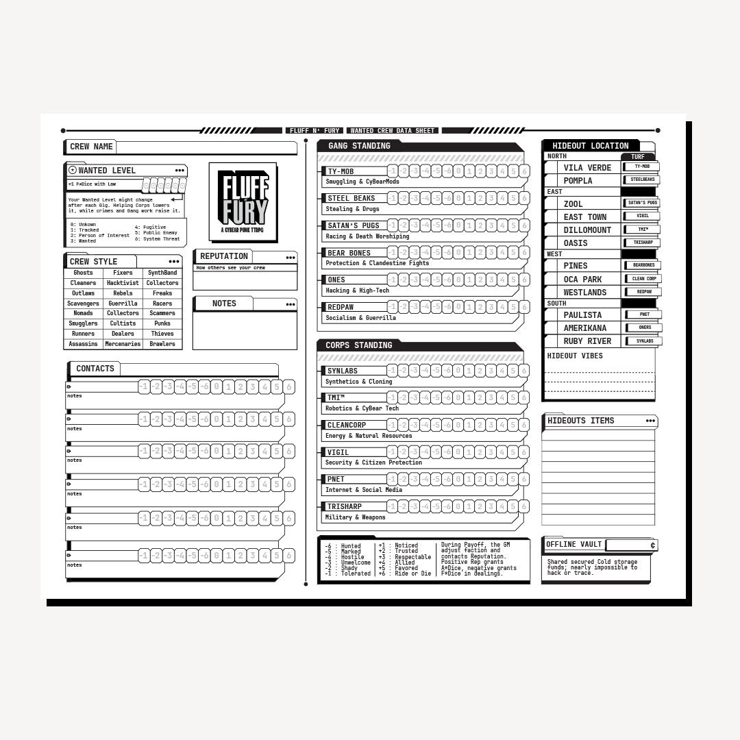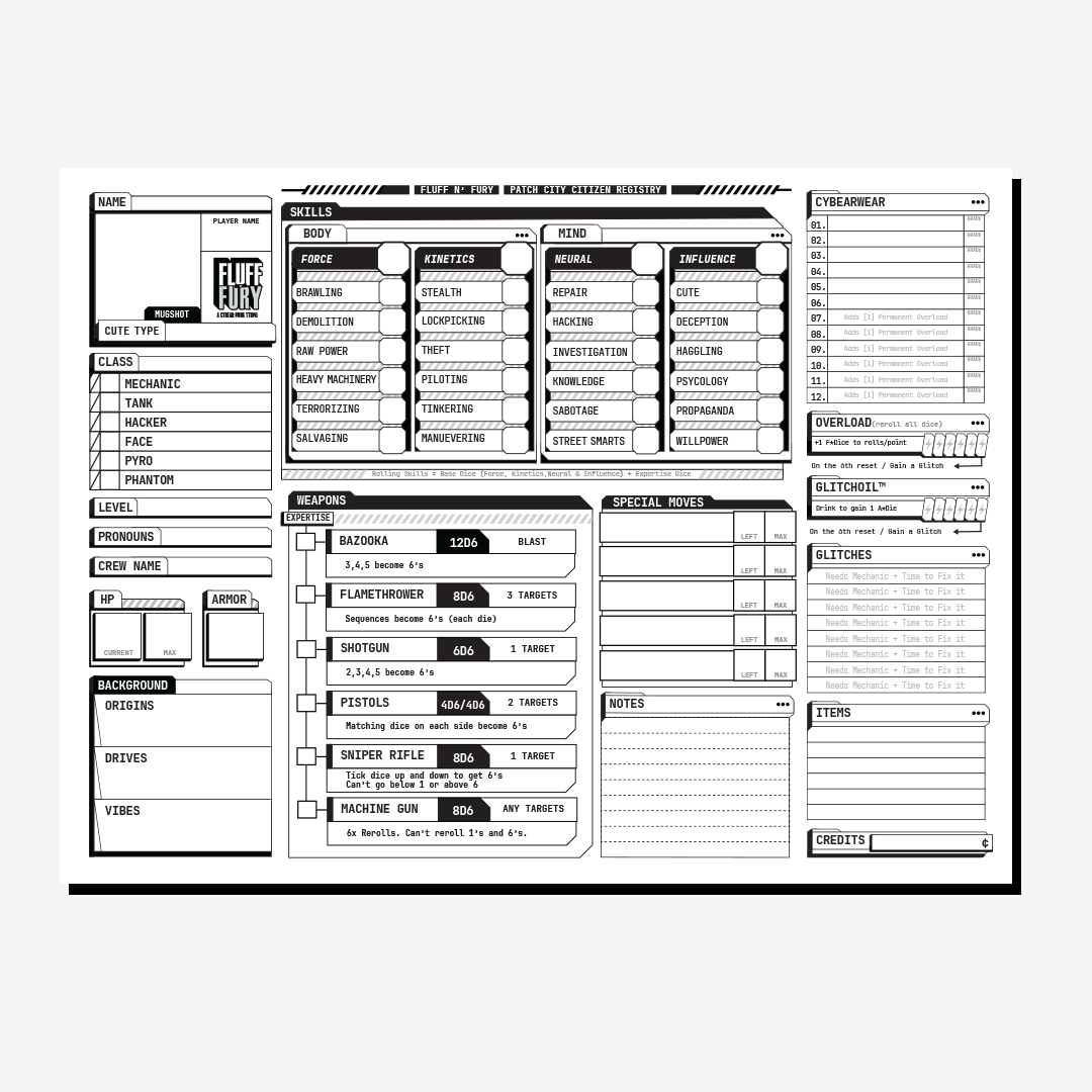 A black-and-white and totally free simplified version of all the core rules from the Official Edition. Perfect as a handout for players who don’t own the book or for anyone who wants to preview the game before diving in.